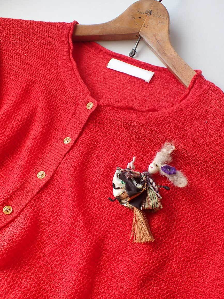 首元は、手紡ぎ糸をまとっています。