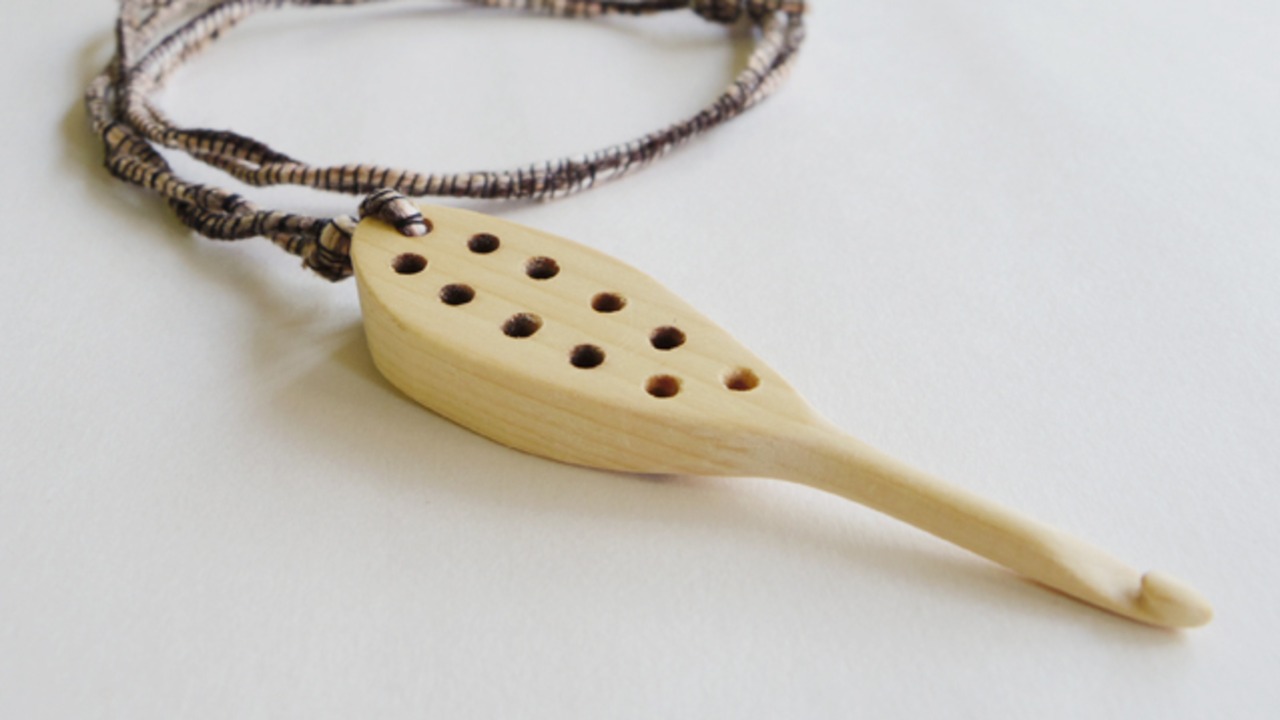 首からぶら下げて、いつでもどこでも編み物ができます。